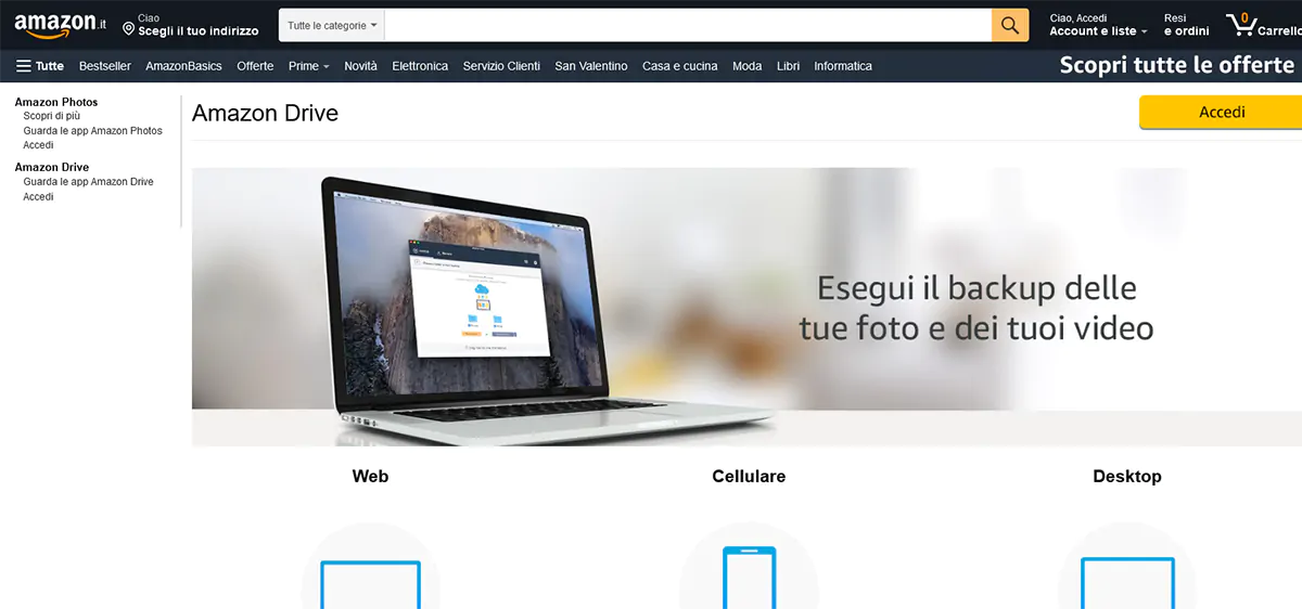 Amazon, oltre che per la sua piattaforma che ormai domina il commercio elettronico, è celebre anche per la sua vasta infrastruttura di servizi Cloud. La versione più semplice dei suoi servizi di Cloud Storage è Amazon Drive. Tutti gli iscritti hanno subito a disposizione uno spazio gratuito da 5 GB. Se siete anche clienti Amazon Prime, e quindi pagate il relativo abbonamento, allora avrete anche un altro servizio, Amazon Photos, che vi permette di caricare immagini in quantità illimitata e gratuitamente. Com’è lecito aspettarsi da un player di questo calibro, il servizio Amazon Drive è di altissimo livello per sicurezza e affidabilità.