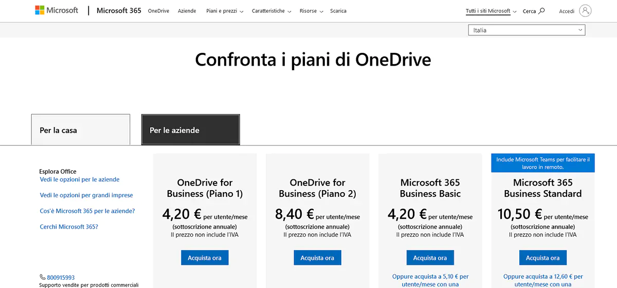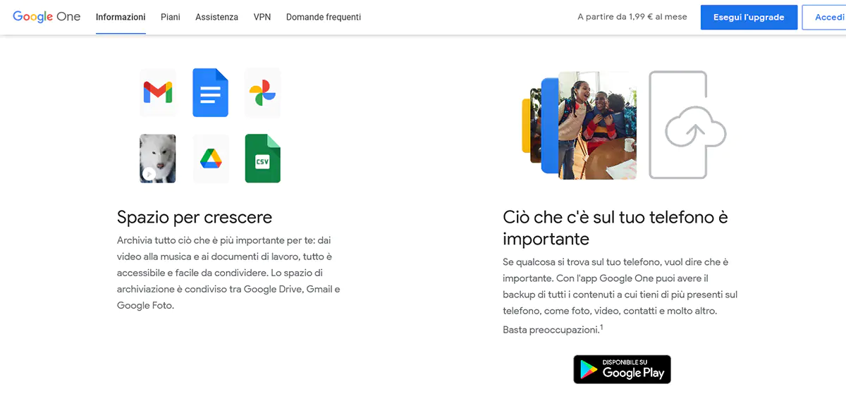 Piano gratuito limitato nello spazio, considerata la quantità di dati e informazioni che è necessario salvare;