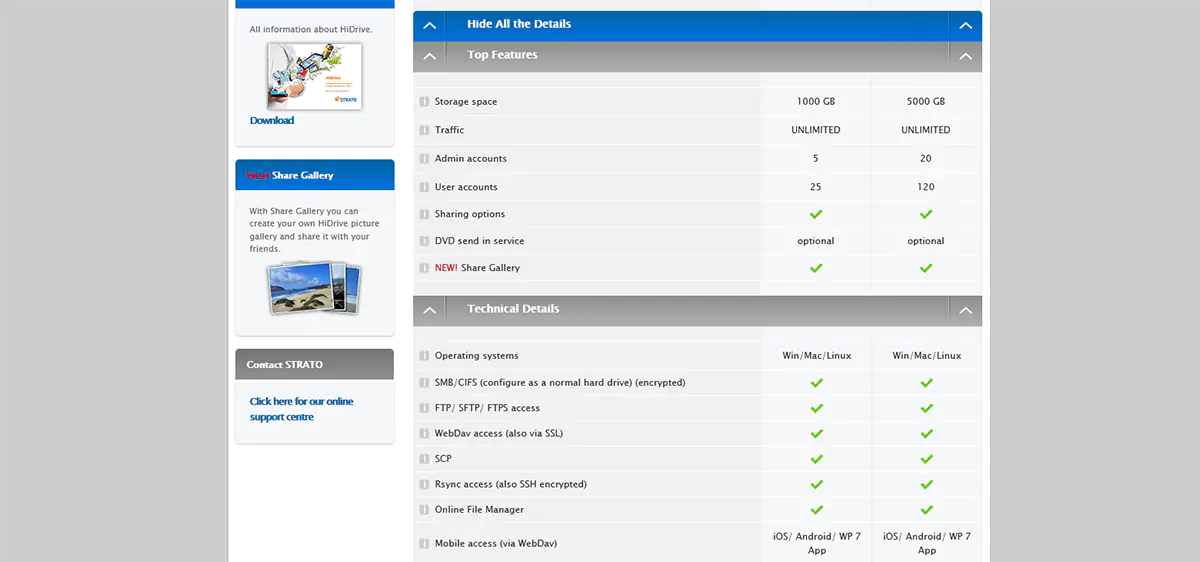 HiDrive è un servizio di Cloud Storage che offre 5 GB gratuiti, che possono tuttavia arrivare fino a 10 GB grazie al loro programma di referral che premia chi fa iscrivere altri utenti. HiDrive, come la maggior parte dei servizi analoghi, offre un comodo client software disponibile per diverse piattaforme. È possibile inviare dei link per condividere file anche con chi non è iscritto al servizio, e vi è anche la possibilità di impostare una scadenza per le condivisioni.