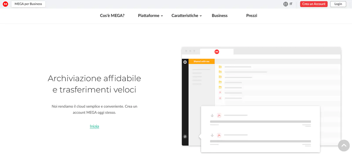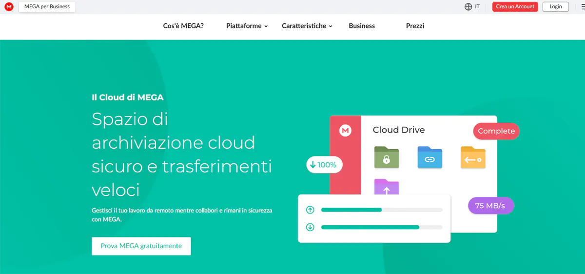 Erede del celebre e controverso Megaupload, MEGA è un servizio (come Mediafire) incentrato più sul file sharing che sul Cloud Storage. Tuttavia, a differenza di altri servizi in questo caso il sistema di sicurezza è davvero eccellente: MEGA offre ai suoi utenti un sofisticato sistema di crittografia end-to-end e un piano gratuito che comprende ben 50 GB di spazio, che tuttavia vengono ridotto a 15 GB a partire dal secondo mese di sottoscrizione.