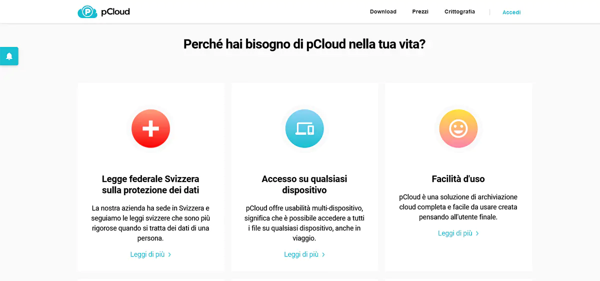 Servizio fornito da un’azienda Svizzera che pone molta attenzione alla sicurezza, precisando di attenersi scrupolosamente alla severa legge elvetica in materia e di essere il servizio di Cloud Storage più sicuro d’Europa. Il suo piano gratuito offre 10 GB di spazio e la possibilità di caricare file di grandi dimensioni e condividerli tramite un semplice link anche con chi non è iscritto alla piattaforma. Il servizio offre numerose funzionalità, quindi, sia per il Cloud Storage che per il file sharing. Da segnalare la disponibilità di applicazioni per le più diffuse piattaforme e l’assenza di limiti circa il numero di dispositivi sincronizzabili.