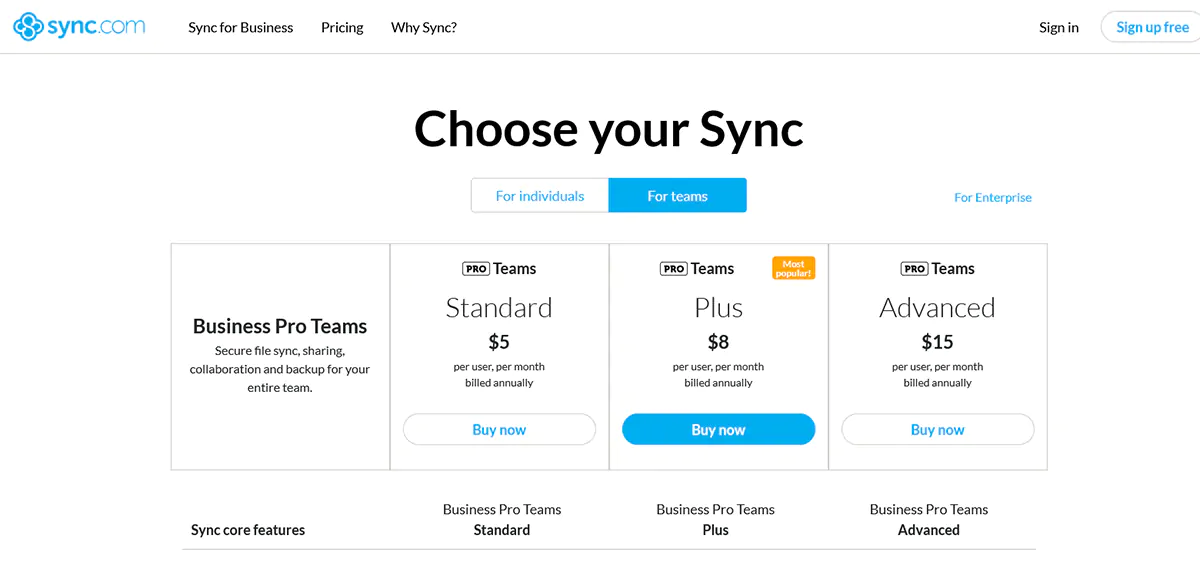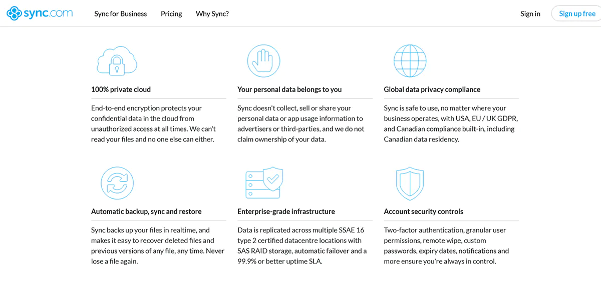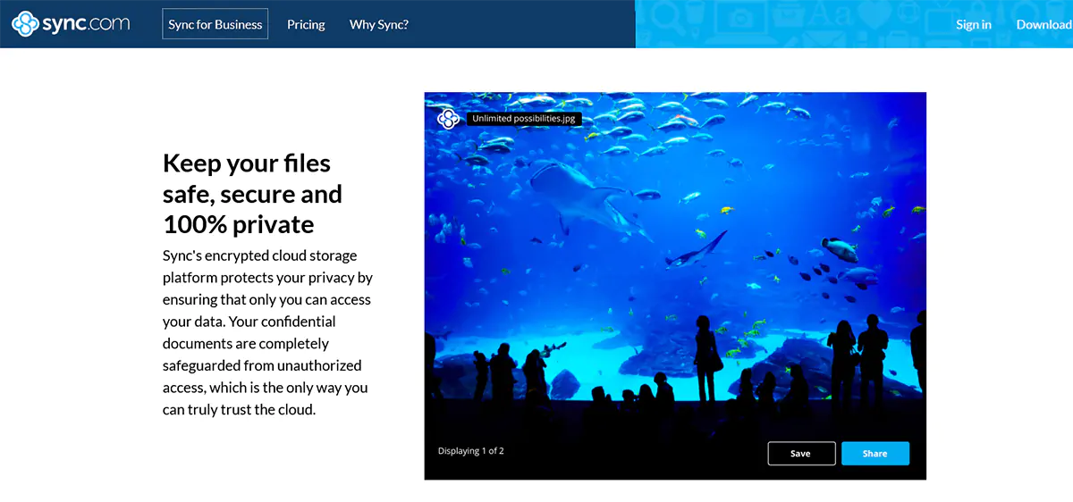 Ancora poco conosciuto in Italia, Sync è un servizio che ha conosciuto una grossa espansione oltreoceano, ed è considerato dagli esperti un sistema all’altezza dei big player del settore per tutta una serie di caratteristiche offerte, specie la sicurezza. Tutti i file caricati in Sync sono protetti con crittografia AES a 256 bit end-to-end, ovvero un sistema di cifratura altamente sofisticato e, allo stato attuale, impossibile da decifrare. La sincronizzazione è molto facile grazie al comodo client e anche l’interfaccia web è facile e molto funzionale da utilizzare. Sync offre un piano gratuito di base con 5 GB di spazio, ma i prezzi delle versioni premium sono abbastanza abbordabili.