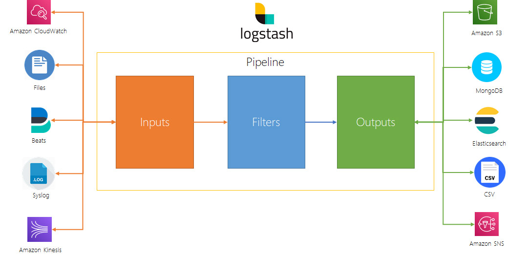 Logstash supporta una serie di plug-in di filtro estremamente potenti che consentono di manipolare e monitorare a piacimento praticamente ogni evento che accade nel sistema. Analogamente i suoi filtri di output consentono di estrarre le informazioni ed inviarle, per esempio ad Elasticsearch, per ulteriori filtri e analisi.