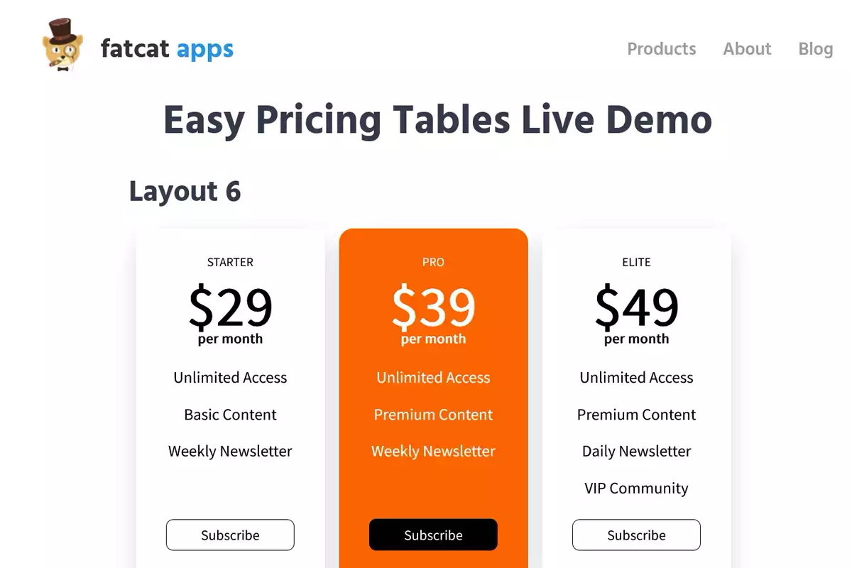 Sito ufficiale: https://fatcatapps.com/easypricingtables/