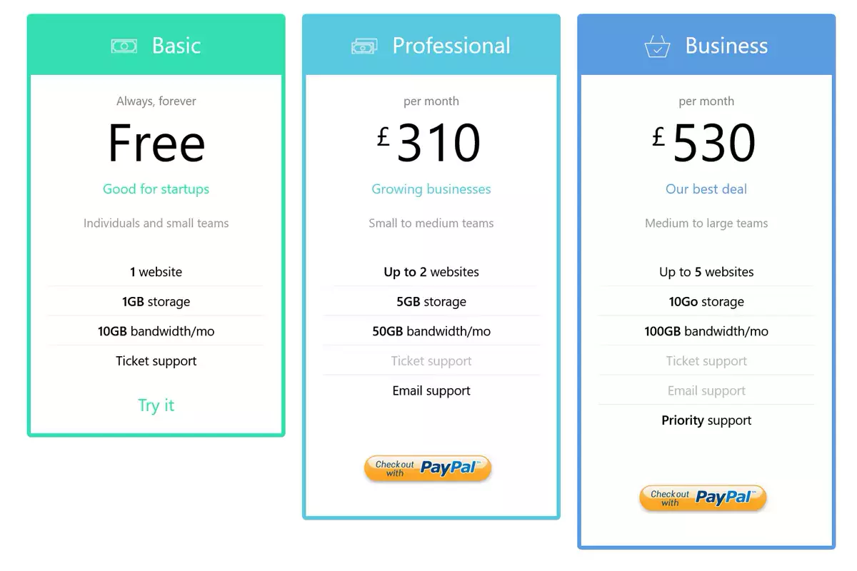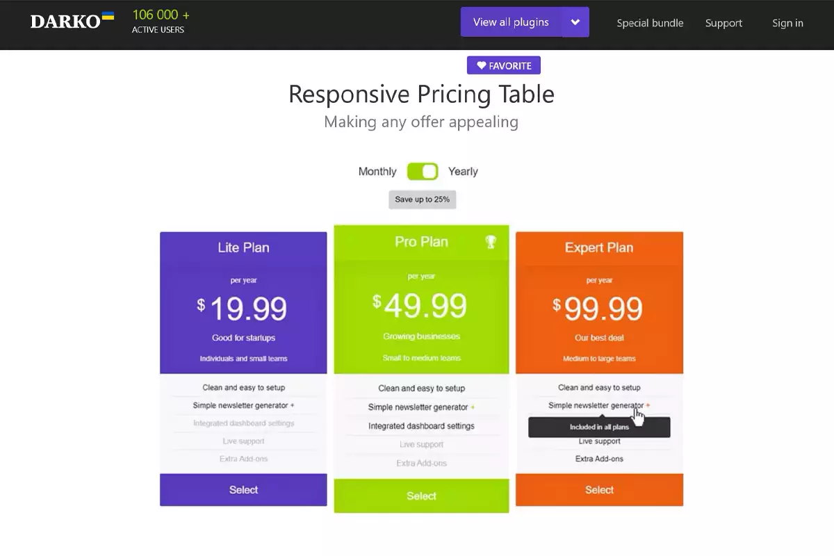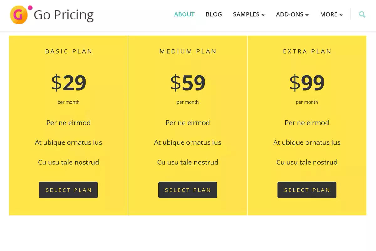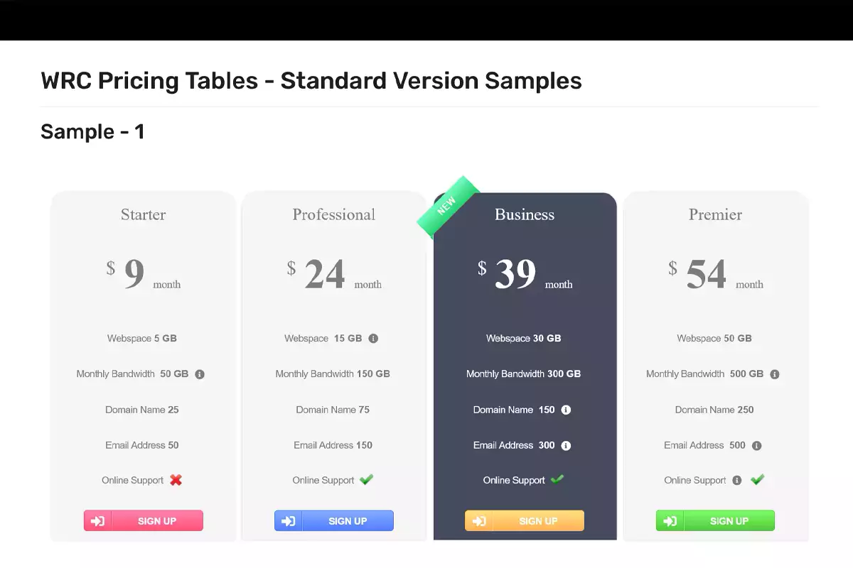 - Easy Pricing Tables
