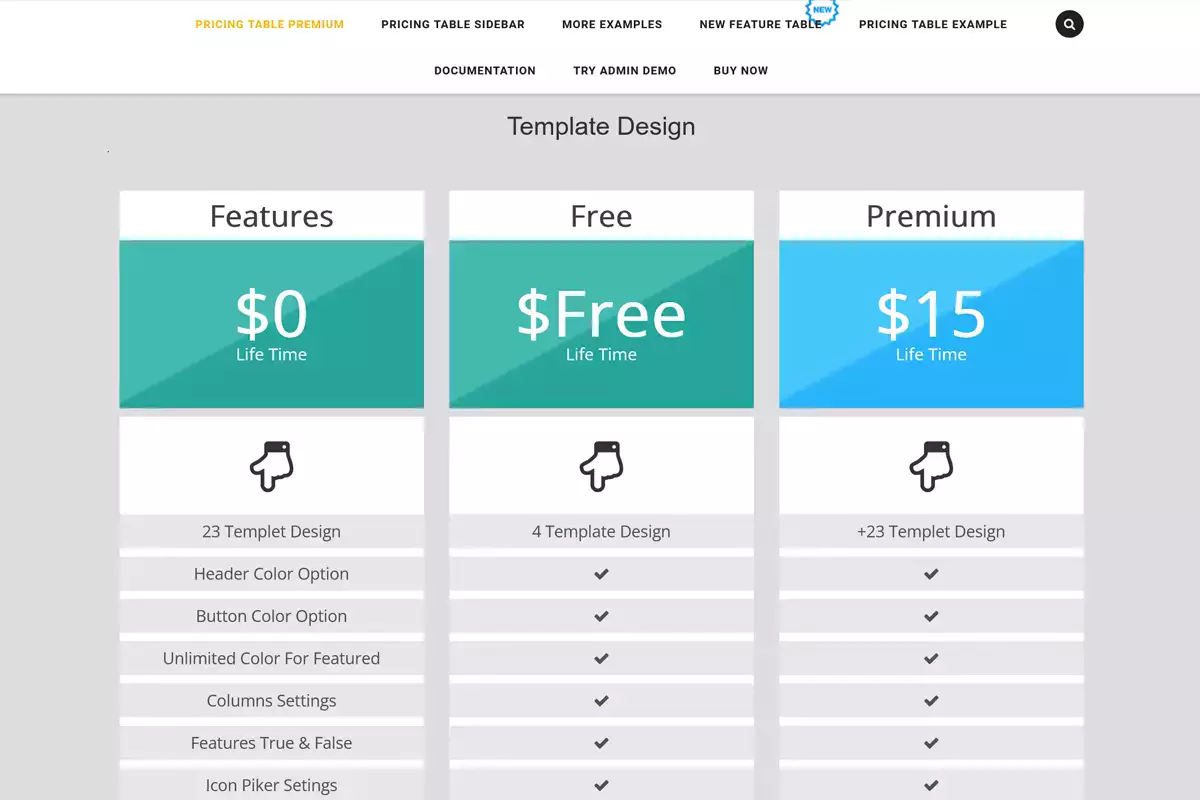 - WordPress Pricing Tables, Sliders & Comparison Tables
