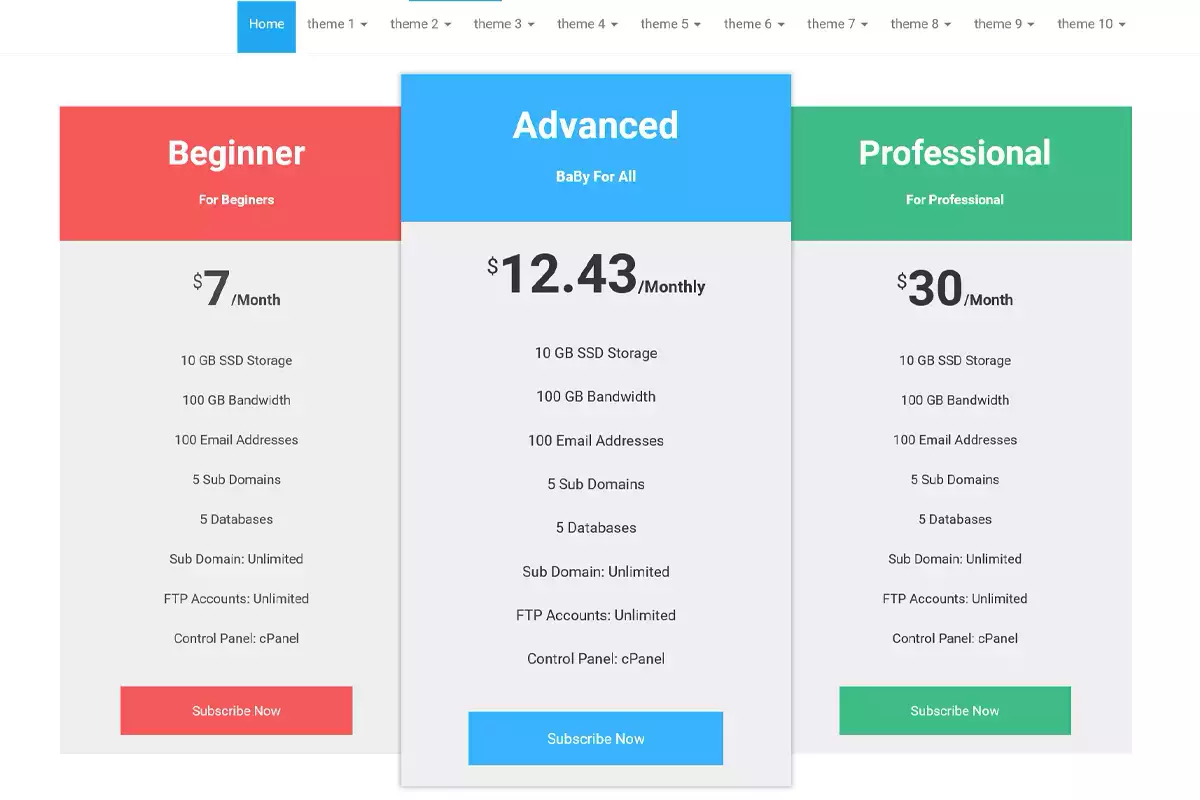 Pricing Table by ThemesCode