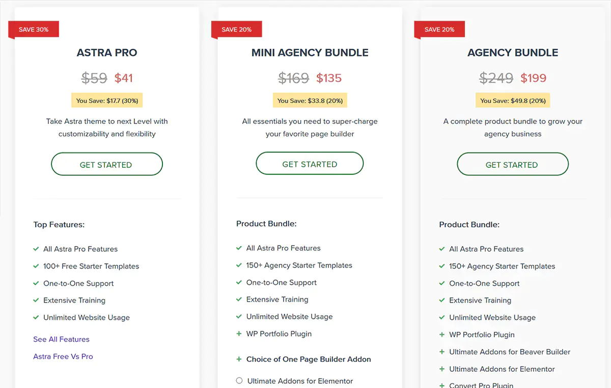 Per finire, il prezzo. In questo momento potete acquistarlo ad un prezzo scontato rispetto a quello abituale. La versione a pagamento di Astra è offerta in tre versioni: Astra Pro a 41 $, Mini Agency Bundle a 135 $ e Agency Bundle a 199 $, con caratteristiche e funzionalità via via crescenti. Per chi volesse realizzare un sito, o anche più siti, è possibile rivolgersi senza problemi alla sottoscrizione “Astra Pro” di base, mentre le altre due sono più indicate per web agency che hanno intenzione di lavorare estesamente con questo template.