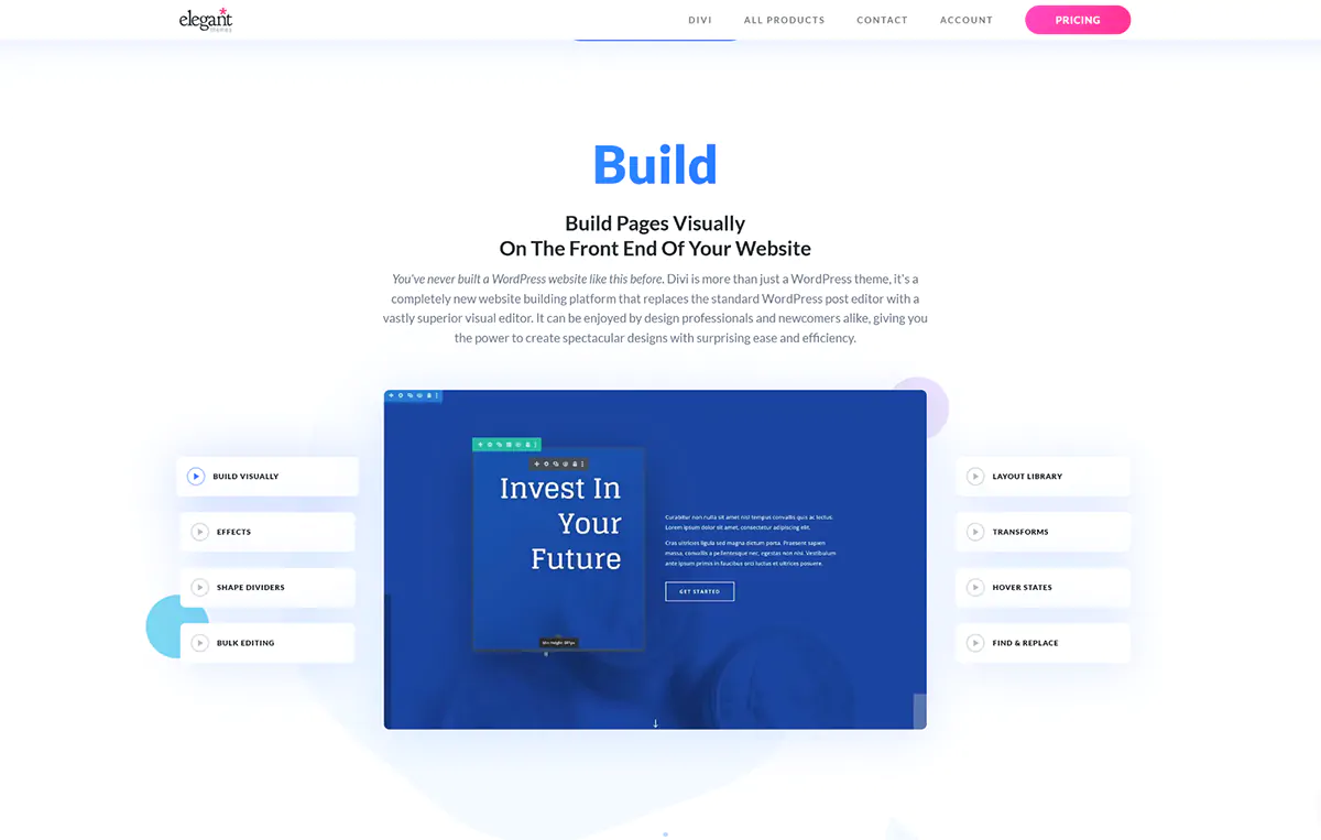 Potente Page Builder integrato: Divi Builder è senza dubbio uno dei page builder drag-and-drop più ricchi di funzionalità dell’intero panorama WordPress. Essendo inoltre un page builder sviluppato espressamente per questo tema, abbiamo la certezza di avere la migliore combinazione possibile.