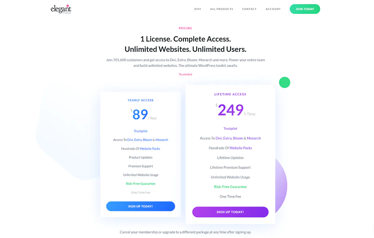 Per finire, riguardo il prezzo, Divi non è certo uno dei temi più a buon mercato di questa selezione, ma d’altra parte la qualità si paga, ed è giusto così. Il tema viene venduto in due opzioni, una annuale a 89 $, e una lifetime a 249 $. Inutile specificare che se prevedete di tenere il tema Divi sul vostro sito molto a lungo, questa seconda opzione è da preferire.