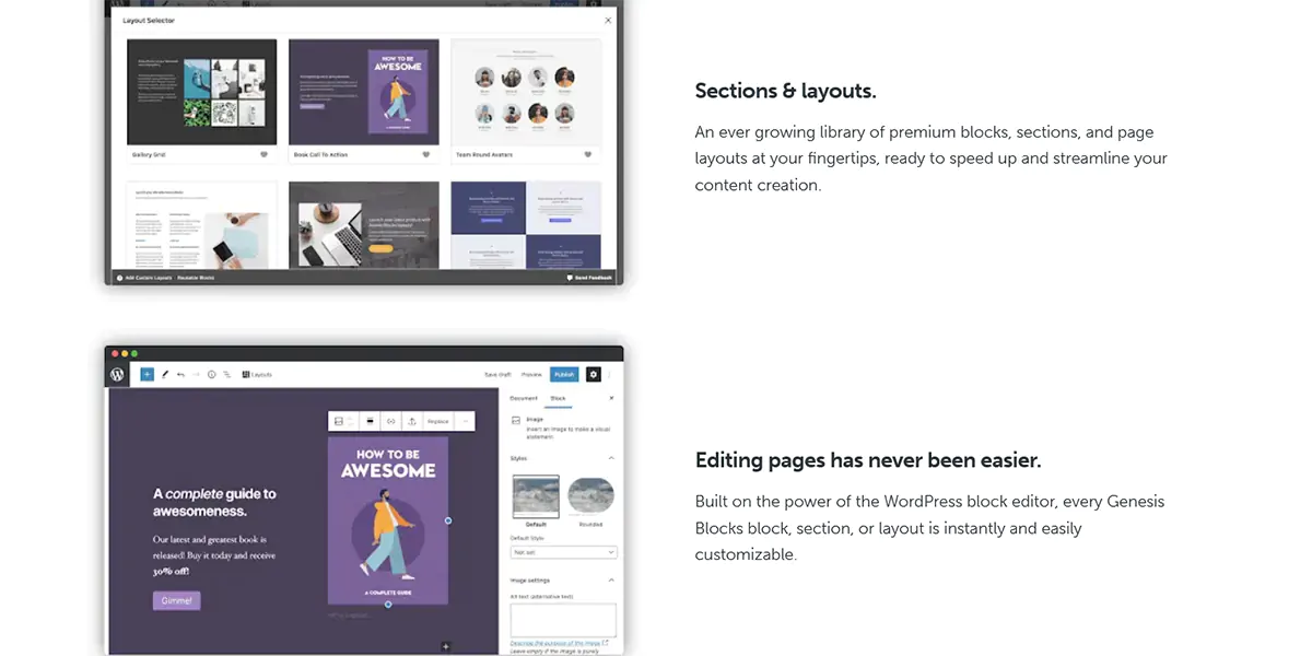StudioPress quindi si usa con un tema child di Genesis, dal quale eredita tutte le funzionalità. Per finire, il template è perfettamente compatibile con i più diffusi Page Builder presenti sul mercato, aumentando ulteriormente le sue già ampie possibilità di personalizzazione.