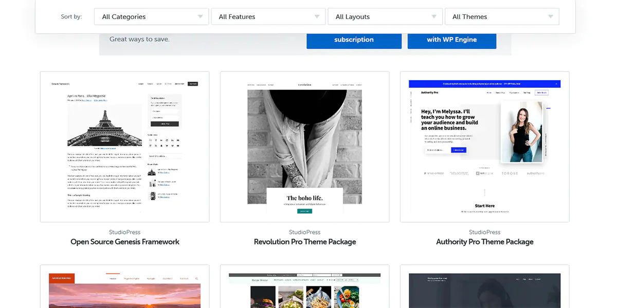 Il framework parte da un prezzo di 59,95 dollari annui, ma che possono aumentare notevolmente a seconda dello specifico template scelto (StudioPress è uno dei più economici).