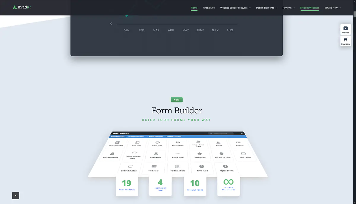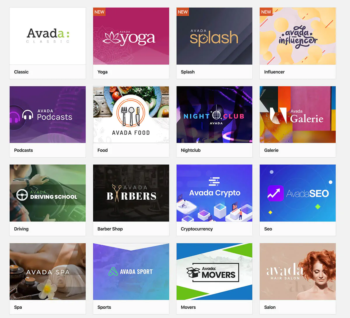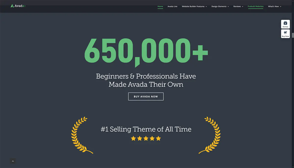 Avada offre inoltre una grande quantità di versioni demo già pronte da usare e personalizzare. La qualità dei siti demo è decisamente molto alta e ovviamente sono presenti progetti dedicati a diverse categorie di mercato.