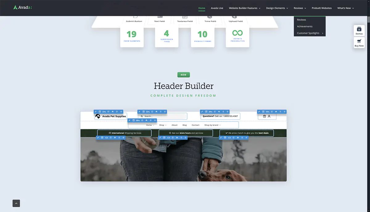 Nuovo front-end Visual Builder: come per i più blasonati page builder in commercio, anche Fusioni Builder prevede l’opzione di modifica direttamente dal front-end, opzioni che vengono costantemente aggiornate e migliorate. Il page builder di Avada offre una moltitudine di opzioni ed elementi pronti all’uso: si tratta di un editor potente che genera pagine veloci da caricare e ben ottimizzate per tutti i dispositivi.