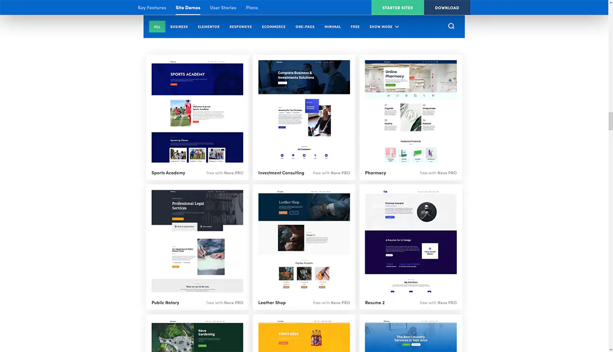 Numerosi siti demo preimpostati di eccellente qualità: anche questa è una caratteristica molto comoda e ben gradita. Acquistando Astra avrete a disposizione una notevole quantità di siti demo già pronti da personalizzare in base alle vostre esigenze, con un notevole risparmio di tempo.