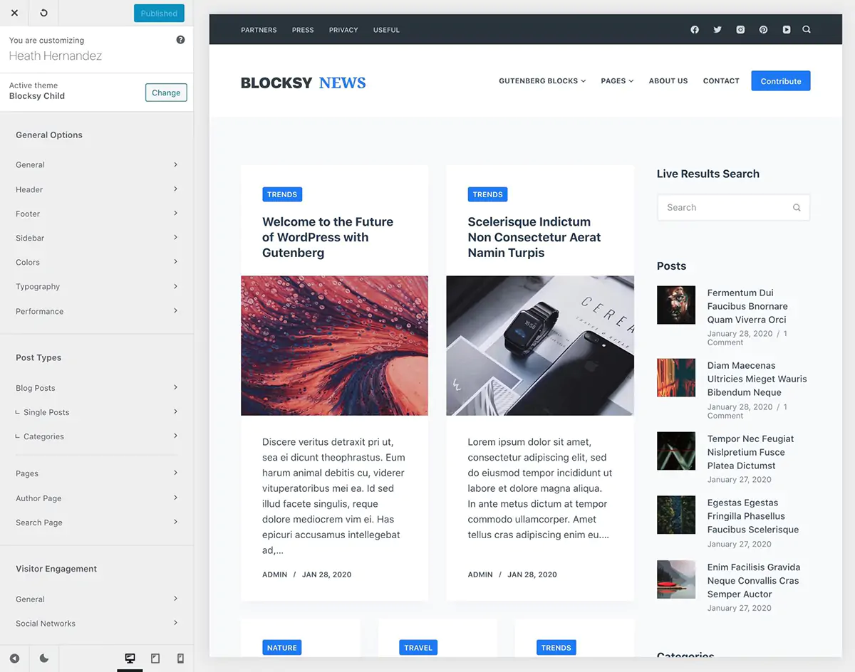 Ottimo supporto per Gutenberg: nonostante Gutenberg sia da tempo l’editor di default per WordPress, questa caratteristica è tutt’altro che scontata. Molti temi blasonati si concentrano su celebri Page Builder commerciali che ben conosciamo, oppure ne implementano di propri. Blocksy invece rivolge molte attenzioni a Gutenberg, con il risultato di ottenere un sito leggero e di non vincolarci a prodotti commerciali.