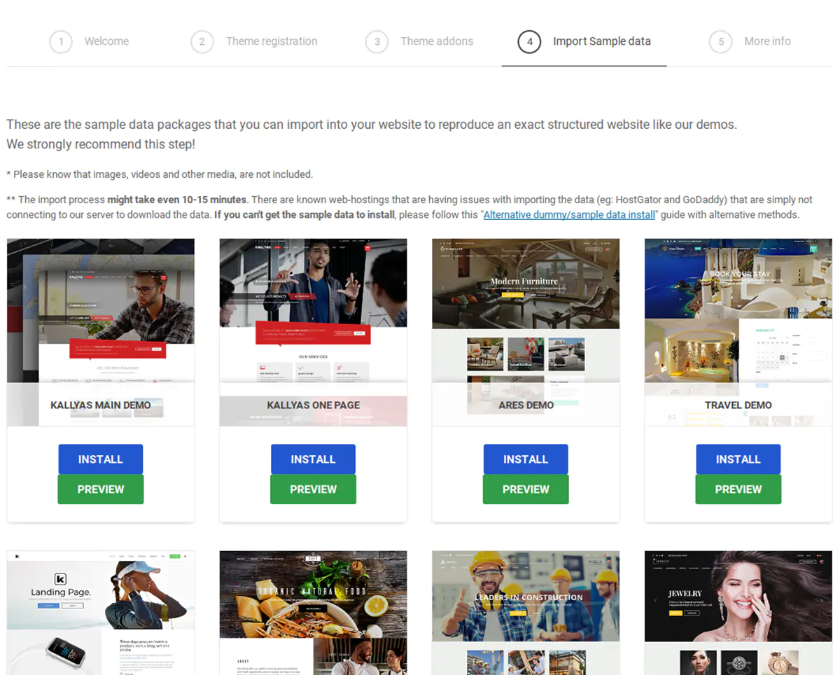 Sistema di importaziona facile e intuitivo: a corollario della quantità e dell’elevata qualità dei siti demo, un’altra piacevole caratteristica è l’estrema facilità con la quale questi siti demo possono essere importanti e quindi resi pronti per lavorare.